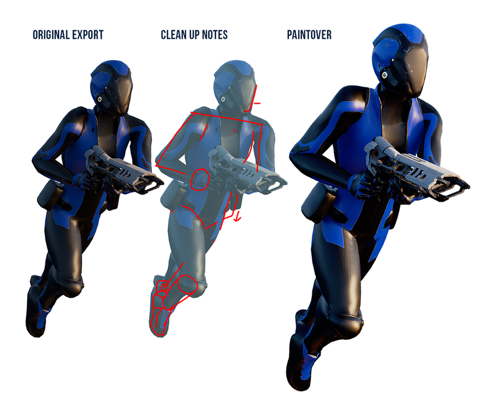 Exported in-game assets from Blender and recomposited them into a master keyart.